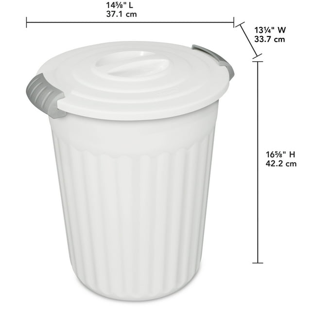 The 24 Quart Utility Can offers an attractive round, polished profile and a sensible, modern aesthetic to a household must have. Two securing latches are integrated into the handles of the base for comfortable carrying and quick access. When latched shut, the Utility Can may be knocked over without the concern of the lid coming loose and contents spilling out. With its generous 24-quart capacity, this Utility Can is great for pet food storage, recyclables or garage organization. It can hold most sizes of birdseed packages, standard small-to-medium bags of pet food, rock salt or potting soil. The overall assembled dimensions for this item are 14 5/8″ x 13 1/4″ x 16 5/8″.