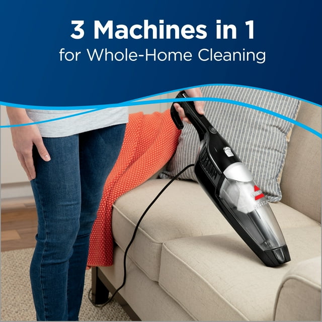 BISSELL® 3-in-1 Turbo lightweight corded stick vacuum gives you convenient and effective cleaning by quickly and easily converting into three different machines. 3-in-1 Turbo can be used as a lightweight and powerful stick vacuum for quick pickups of messes across multiple surfaces, including carpet, area rugs and hard floors. Then, with the swift convenience of the Quick Release Handle, the machine easily converts to a hand vacuum for cleaning above floor surfaces and upholstery, and keep the foot on the hand vacuum for cleaning stairs. This ultra-lightweight machine also only weighs in at less than 4 pounds. So, it’s easy to use and carry the home, and then easy to store when you’re done cleaning.
