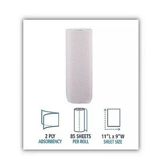 Perfect for household clean up. Embossed paper towel. Two-ply absorbency for general cleaning. Towel/Wipe Type: Perforated Roll; Application: General Purpose; Material(s): Paper; Number of Plies: 2. Compliance Standards: LEED Applicable. Package includes: 30 rolls of 85 towels each. Recycled Comments: Contains a minimum of 40% post-consumer recycled content, 100% total recycled content.