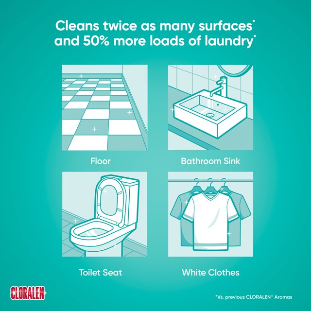 CLORALEN®Aromas 121 fl oz Lavender Scent Bleach is a powerful Triple-Duty cleaning agent for household and laundry use. Our formula deep cleans, whitens and deodorizes leaving a pleasant clean aroma. With the long-lasting fragrance of CLORALEN® Aromas Lavender Scent, you get the stain and odor-fighting power of bleach combined with a delicate scent of lavender that blends sweet, floral, and herbal aromas.