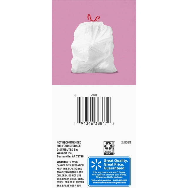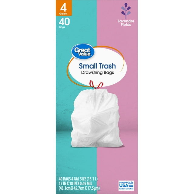 - Great Value Drawstring Trash Bags 4 Gallon White Lavender Fields, 40 Bags