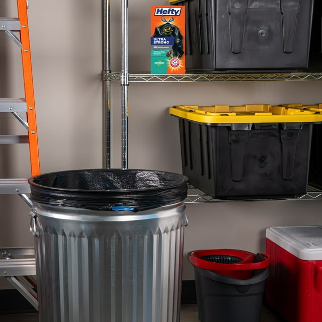 Hefty Ultra Strong 30 Gallon Trash Bags help you tackle cleanup jobs all around the house, thanks to their Hefty Strength and large capacity. Equipped with 6-in-1 Protection, these tough Hefty 30 gallon trash bags offer flex strength, a tough drawstring, odor control, and resistance to punctures, leaks, and tears. The result is the highest protection available in flexible garbage bags. Plus, these Hefty Ultra Strong trash bags are made with 20% post-consumer recycled materials. (1) And that stretchy strength of Hefty 30 gallon trash bags means you don’t have to worry about unexpected bag breakage and inconvenient messes when you take out the trash. Signature Hefty quality plastic ensure these large trash bags deliver superior puncture resistance for outside and inside jobs. Plus, with their dependable drawstring closure, these black trash bags resist breakage and make transporting easy. As a bonus, these scented black garbage bags feature Arm and Hammer odor control technology and a White Pine Breeze scent to keep unpleasant smells at bay. Count on these Hefty trash bags for the strength and reliability you expect from Hefty. All Hefty products are backed by a 100% satisfaction guarantee. *Fabuloso (R) and associated designs are trademarks of Colgate-Palmolive Company and are used under license. *The Arm and Hammer trademark is owned by Church and Dwight Co., Inc., and used by Reynolds Consumer Products LLC under license. (1) 20% post-consumer recycled materials from our manufacturing process