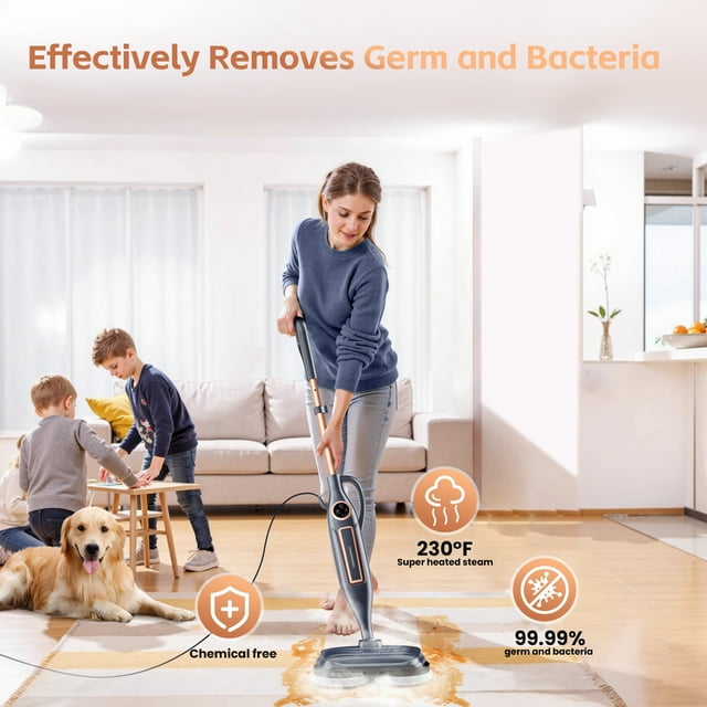 - Steam mop easily removes stubborn dirt and oil stains