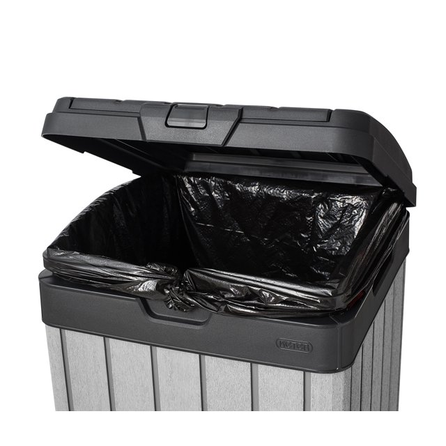 The Keter Rockford Duotech Outdoor Trashcan is an attractive disposal system that is customizable to fit in with any outdoor furniture collection. While the sleek double lid hides the bag inside, it is also keeping the bin shut when completely overturned keeping your trash secure and your investment in waste disposal products protected. It has a dedicated easy-to-remove fluid collection tray that makes cleaning the unit as easy as pie. It will never rust or dent and is low maintenance. This durable plastic bin is the perfect addition to any outdoor space and matches any Keter Duotech Product.