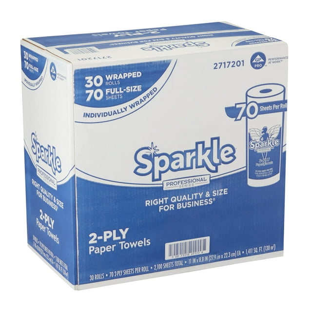 Sparkle Professional Series® by GP Pro Perforated Kitchen Paper Towel Rolls, 2-Ply, 11″ x 8 4/5″, 70 Sheets Per Roll, Case Of 30 Rolls