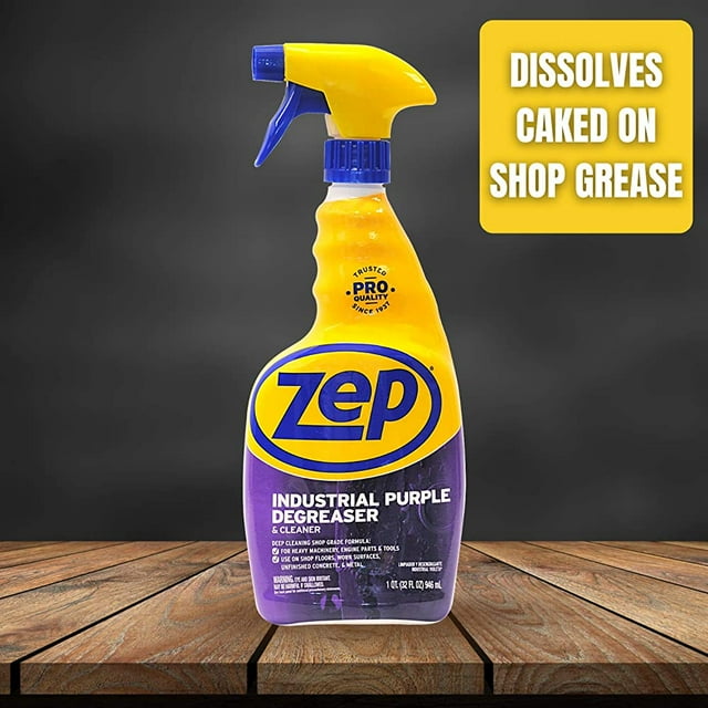 Zep 32 fluid ounce Purple Degreaser is for use in settings where industrial levels of grease are on machinery and surfaces. Pros know that the powerful solvents in this industrial purple degreaser quickly dissolve grease, oil, tar, adhesives and paint. These multipurpose cleaners shop grade formula make quick work of small jobs. This ready to use formula works on shop floors, work surfaces, unfinished concrete and metal. For use on heavy machinery, engine parts, tools, and more.